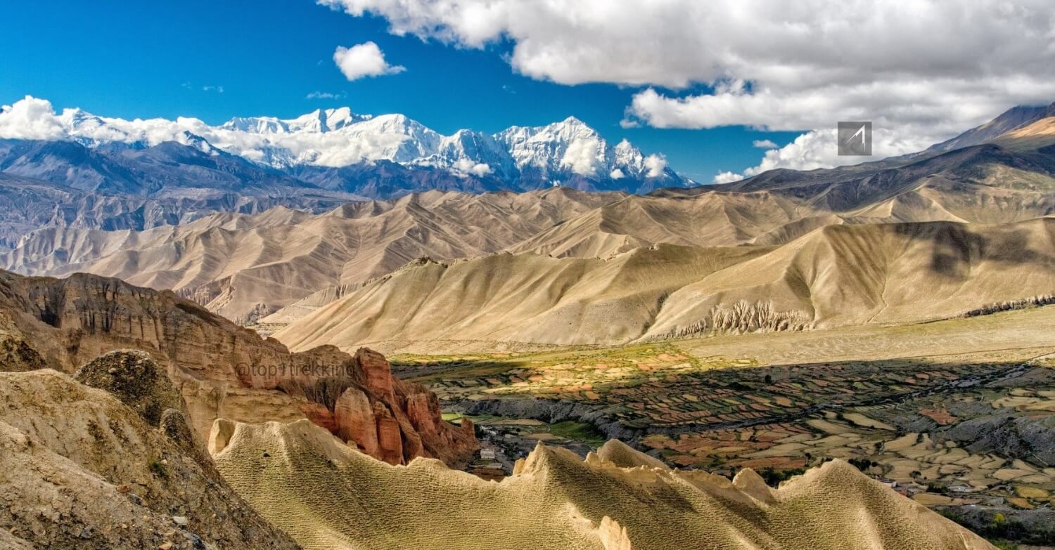 As you start your trek then you need to go down to the Tsarang river, then climb bit more to walk on the straight trails, you can see the big empty flat land and colourful hills on both sides the Himalayas are still visible. There are beautiful Chorten on the way to Lomangthang. The trail is not that steep but it gradually climbs to uphill near to Lomangthang from where you can see lomangthang very clearly. The whole city is visible from here plus you can see the green lands above the lomangthang as well. the trek is over when you enter into the city of Lomgthang today, stay overnight at Lomangthang.